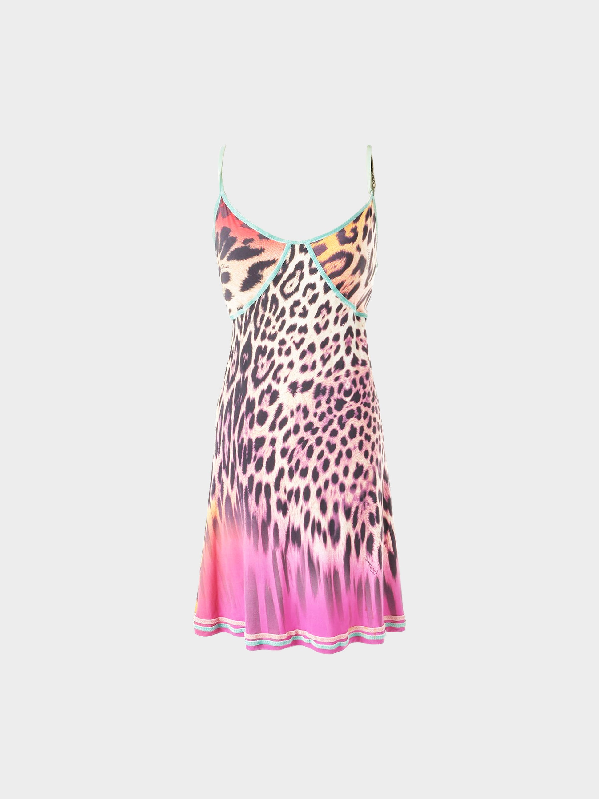 Roberto Cavalli 2000s Multicolor Leopard Print Silk Dress